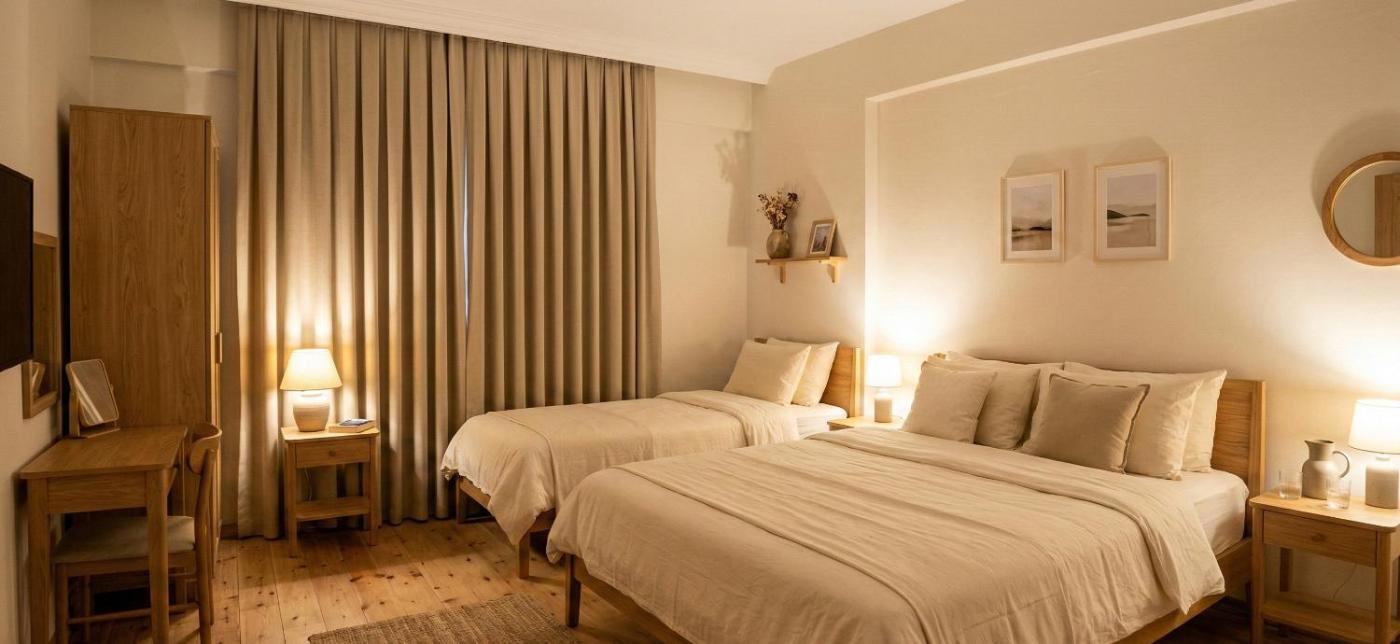 Dört Kişilik Oda - Özel Banyolu. The quadruple room provides air conditioning, a wardrobe, as well as a private bathroom featuring a shower and a bidet. The kitchen is equipped with a stovetop, a refrigerator and a microwave. This quadruple room features heating and a flat-screen TV. The unit offers 3 beds.